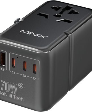 MINIX 170W Universal Travel Adapter GaN III Travel Adapter Worldwide with 3 USB-C & 1 USB-A Ports, International Power Adapter Compatible with US/UK/EU/AU for Laptops, Tablets, Phones, Cameras