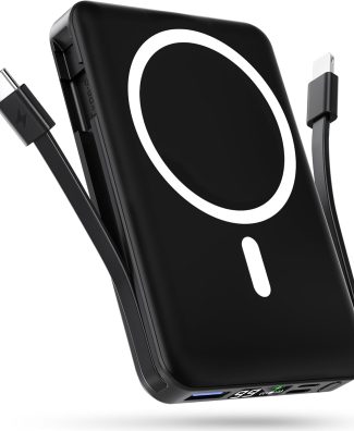 podoru for Magsafe Battery Pack, 10000mAh Magnetic Power Bank Built-in USB C Lighting Cables 22.5W PD Fast Charging LED Display Wireless Portable Charger for iPhone 16/15/14/13/12/ All Series-Black